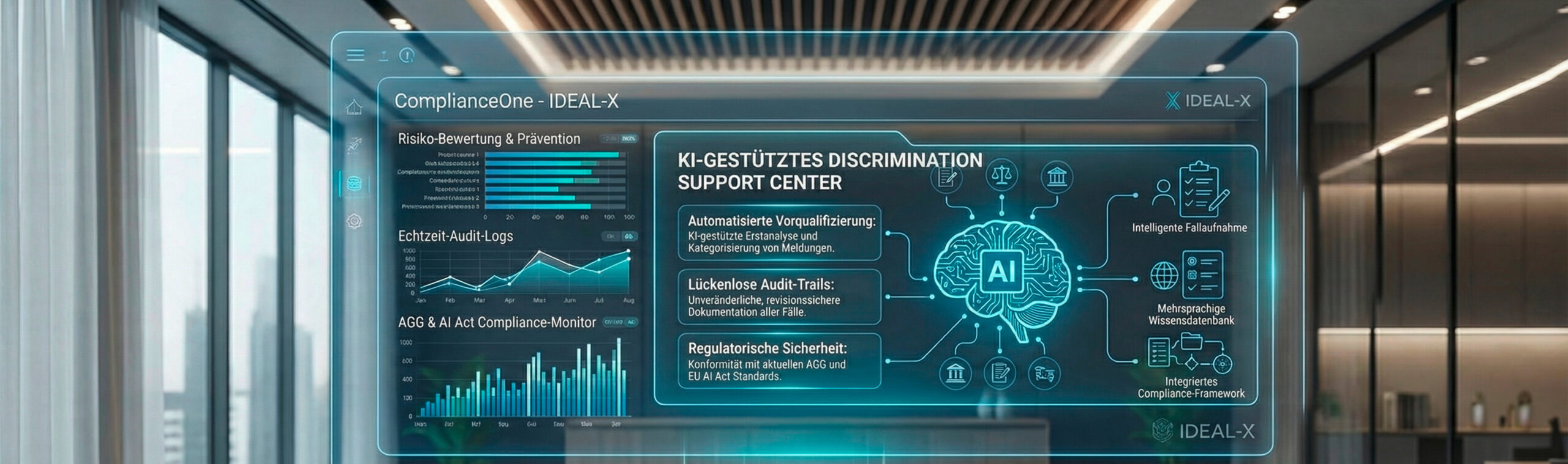 Compliance auf dem Papier schützt niemanden. Mit Compliance.One haben wir ein KI-gestütztes Discrimination Support Center gebaut, das juristische Sicherheit mit echter Barrierefreiheit verbindet – AGG-konform, ISO-27001-zertifiziert, in 100 Tagen live.